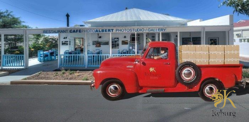 Doch erst die Arbeit dann das Vergnügen, mit Freuden liefern wir erstmal den Wein! In der Mitte des Ortes, entlang der Hauptstrasse, finden wir unseren geschätzten Kunden, das Café Photo Albert.Die Besitzer, Sabine und Stephan Jaggy empfangen uns sehr freundlich und freuen sich auf den Nachschub vom Kyburg Wein. Das Schweizer Ehepaar lebt seit etwa drei Jahren in Prince Albert. Hier können wir, und natürlich alle Besucher, eine köstliche Mahlzeit geniessen begleitet mit dem passenden Kyburg Wein.